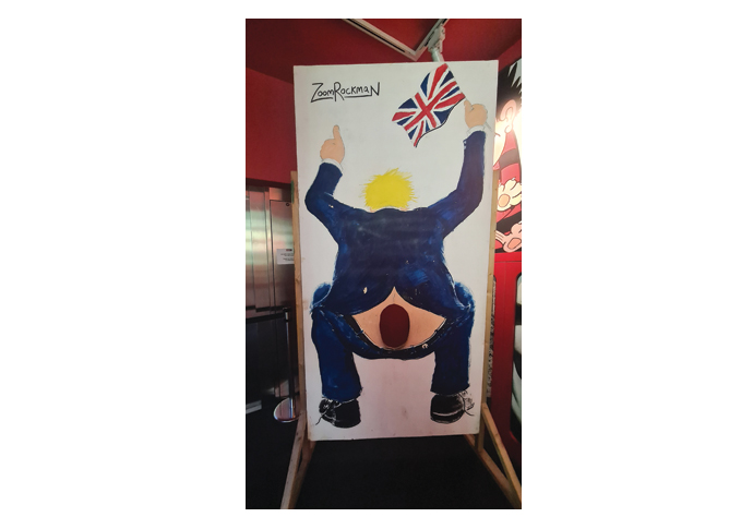 Zoom Rockman’s seaside cutout board of Boris Johnson that was at the Herne Bay cartoon festival