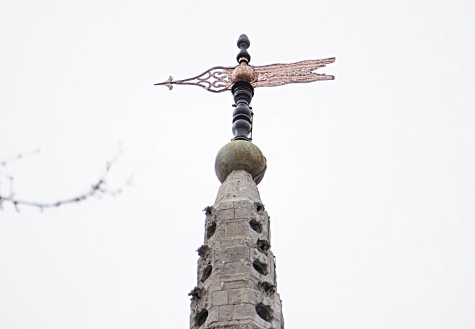 Repairs to the steeple have just finished. The weather vane, which has sat atop the church since 1764, has been mended and put back in place.