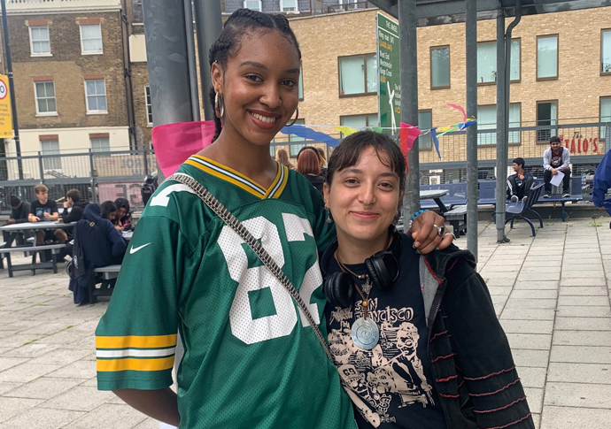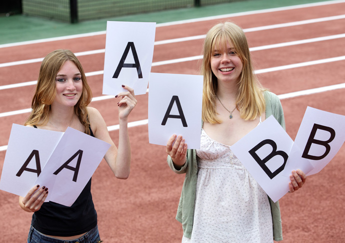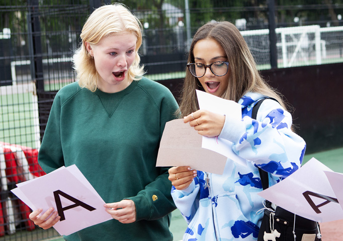 Highbury Grove’s Iris and Anna are happy to flag up their grades
