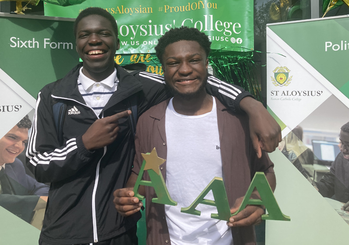 St Aloysius’ student Lawrence Doddo Andoh, 18, who got an A* and two As, was a touch disappointed not to have achieved two A*s after stunning his teachers two years ago with a clean sweep of Grade 9s at GCSE. He now plans to study medicine at Queen Mary University in east London and wants to become a neurologist. “I really enjoy science-based subjects. And along with helping people as well, I feel like it fits,” said the 18-year-old. He said his mum, a caretaker at UBS, screamed when he told her his results.