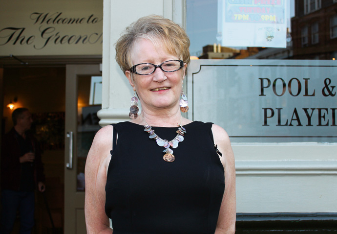 Cheryl Righelato (centre) gets to work on Ms O’Brien’s hair at The Green Man pub