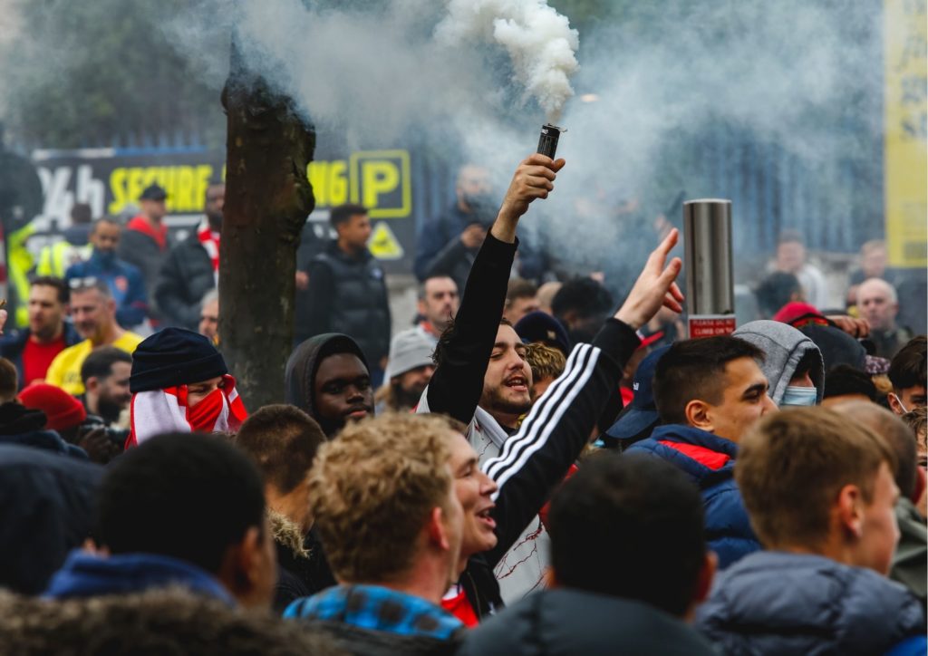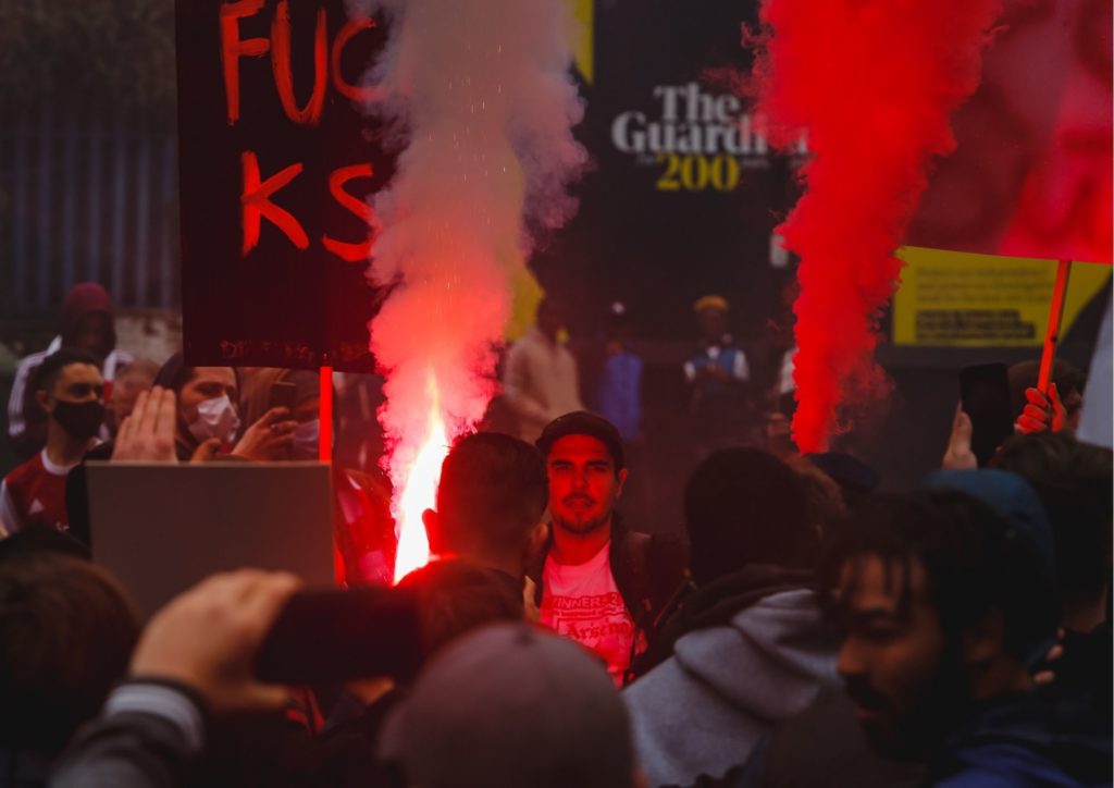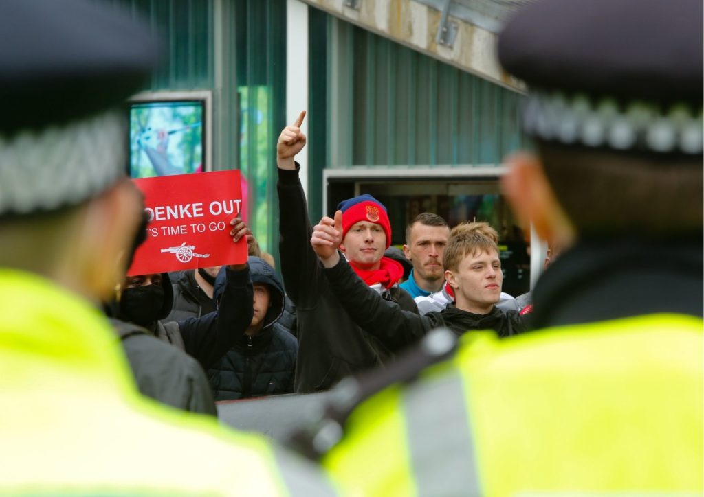 Around 200 supporters staged the demonstration in opposition to US billionaire Stan Kroenke’s ownership of the club – and follows the botched European Super League breakaway.