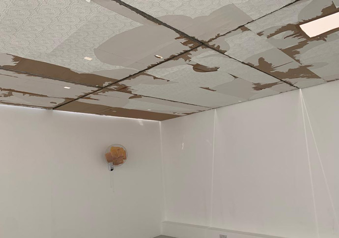 For the exhibition he made a Victorian ceiling using white Victorian wallpaper. “For most that encounter it, they might think ‘oh yeah, my grandma used to have that ceiling’ and feel comfort and nostalgia,” he said. “For me, it’s an oppressive ceiling. If you found it in Nigeria or India, it was brought there by colonial histories … It’s about how things can be warm for some people, but not for others.”
