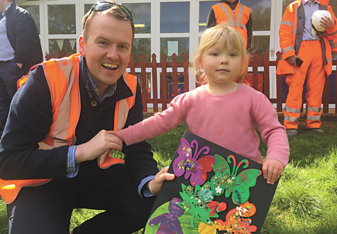 At the Bandstand on Tuesday, when Jessica Barnes, 4, (below) handed a thank-you card to Hochtief project manager Eoin Regan