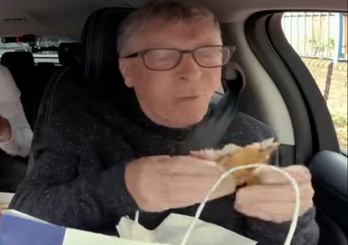 And did they enjoy their chips? The “oohing” and “aahing” sounds made at the end of the clip, as Mr Gates finally tucks into his meal after a long day’s driving, would suggest a resounding yes.