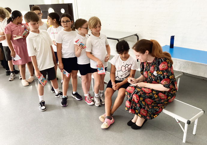 The writer, who has penned Knights and Bikes and the “Rani Reports” series, led an assembly at Rotherfield Primary School for students in Years 3, 4 and 5 before heading up a smaller workshop about being an author for 20 of the children.