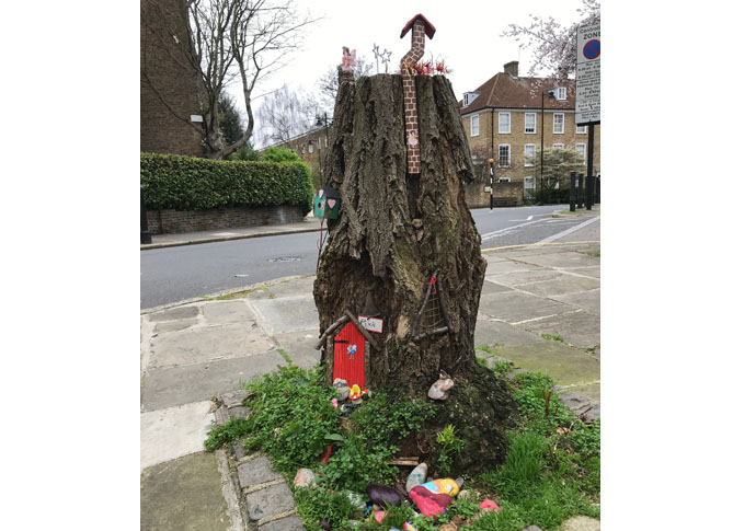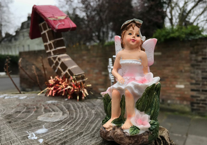 “Now, I know this little scenario doesn’t address pollution, climate change, political upheaval, and war (wrongful eviction though, possibly) and the exquisitely decorated tree stump probably didn’t mean much to the passing banker, council official or construction worker but, on a few glorious occasions, the pixies brought joy and a smile to the face of local children.”