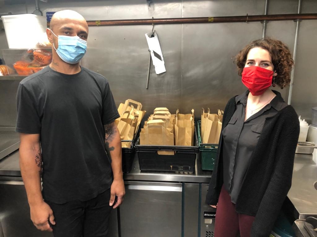 Cllr Luisa Porritt collects meals from Haverstock Tavern chef Jonathan Peaker