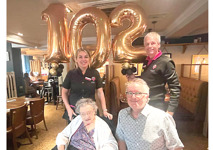 Doris was treated to a celebratory pub lunch with her son Geoff, carer Paul Kurton and hairdresser Laura Woodroof