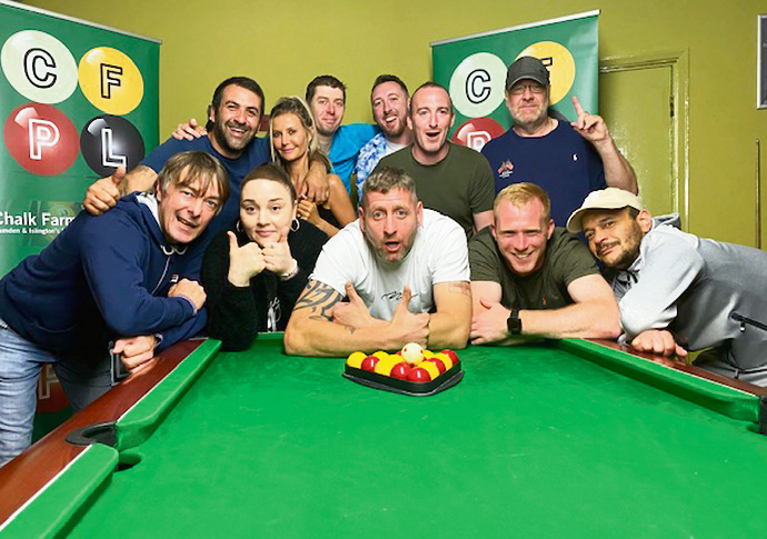 The biggest winners of the night at the Hurricane Room in King’s Cross were the Peckwater Playboys, who beat Maddens Misfits 5-2 to win the Liam Tarrant Cup – dubbed the Chalk Farm Pool League’s answer to the FA Cup.