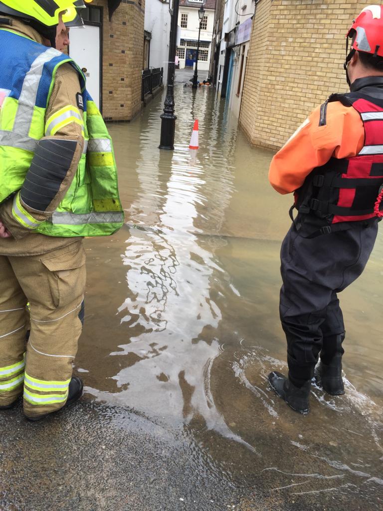 “It was completely flooded right the way up to the ceiling. The water was coming out of the door [into the street] at quite a fast rate. It had quite some force.”