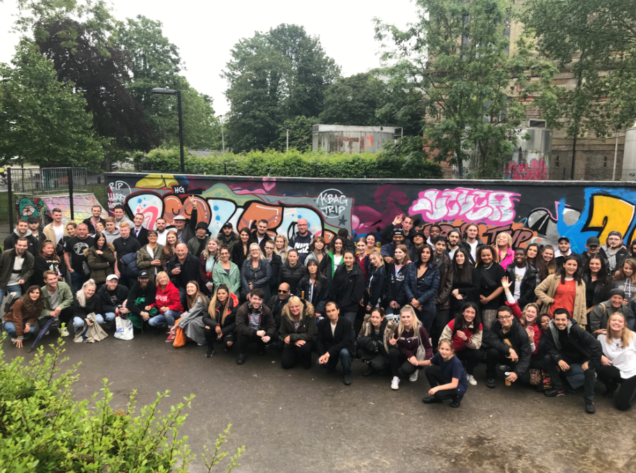 Friends of the three artists gather at the graffiti wall in Alexandra Palace park this week