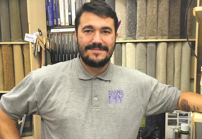 Jamie Starling, 29, has worked at Chapel Market Building and DIY shop for eight years. He says Chapel Market is “a good environment to work in and has a great community feel. We all know each other here.” He says “business is up and down probably because more people are doing things themselves. DIY is a necessity whereas getting new flooring is a semi luxury which people often live without.”