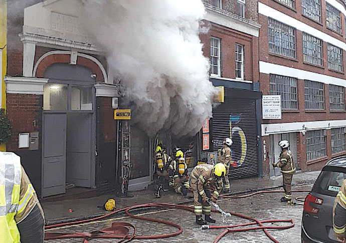 The fire at WTC Watch Repairs in July last year. Photo: @LondonFire