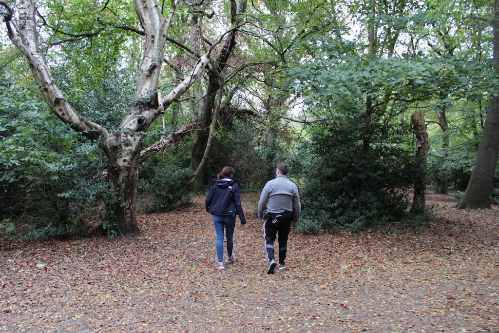 The duo look around the area on Hampstead Heath