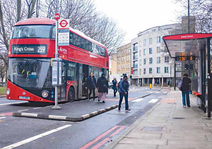 A floating bus stop in Tollington Road, Holloway