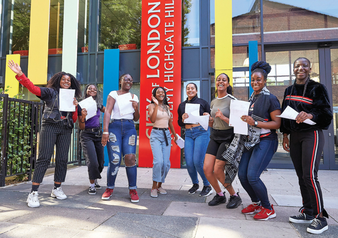 Jumping for joy at City of London Academy Highgate Hill: Just under 60 per cent of students achieved a Grade 4 and above in English and Maths