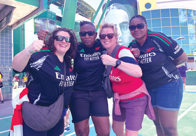 North Londoners and long-time Arsenal fans, Tiffany, Charmaine, Lynne and Karen are here to show their support for the women’s team in Lisbon [Catherine Etoe]