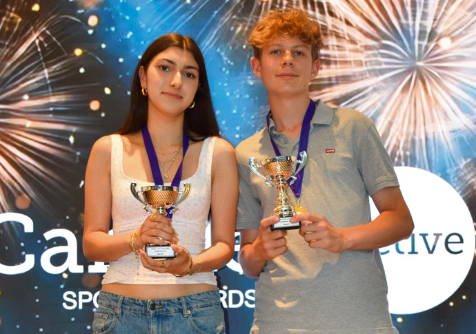 Tara Pattinson and Caleb Schafer collected the Outstanding Team Award on behalf of Camden’s gold medal-winning squash squad, who train at Cumberland Lawn Tennis Club