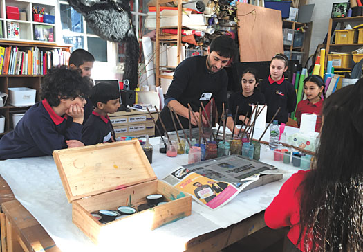 Duncombe primary pupils Ali, Baran, Yusuf, Yamin, Ropelda and Jennifer learning about ebru