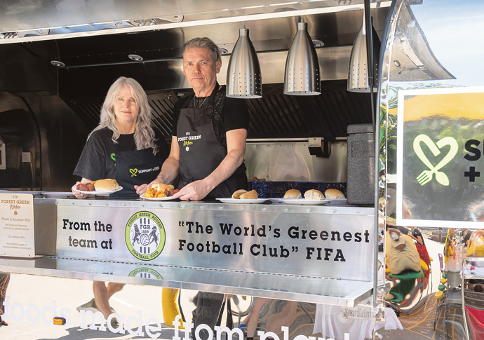 The visit was a collaboration between Ms Baird’s charity Support+Feed, which is expanding to the UK to continue its efforts to promote sustainable diets, and Mr Vince, whose all-electric Airtream food truck is used to serve Forest Green Rovers fans.
