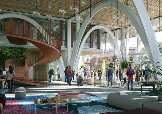 While the research labs will be on upper floors, developers are offering to create space for community events and a “makerspace” for educational use.