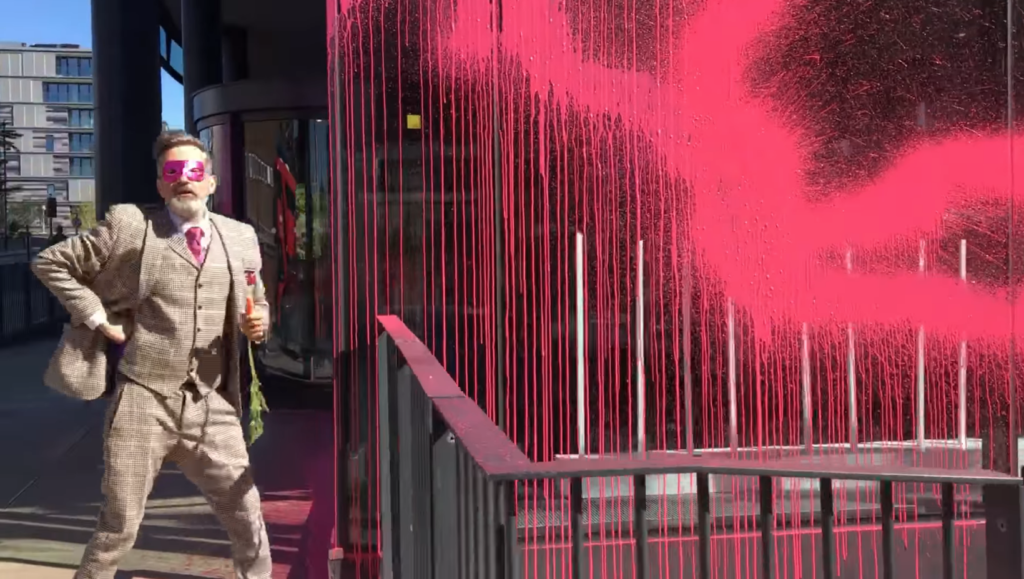 THE Guardian newspaper’s offices have been sprayed with neon pink paint this afternoon (Friday) – the day after a similar attack on the HS2 offices in Euston.