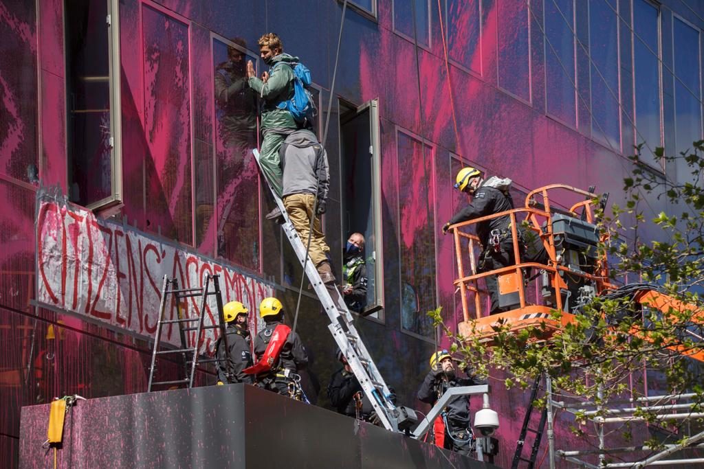 They both used fire extinguishers to cover the office in pink paint and then remained there overnight refusing to get down until at least one of their demands were met.