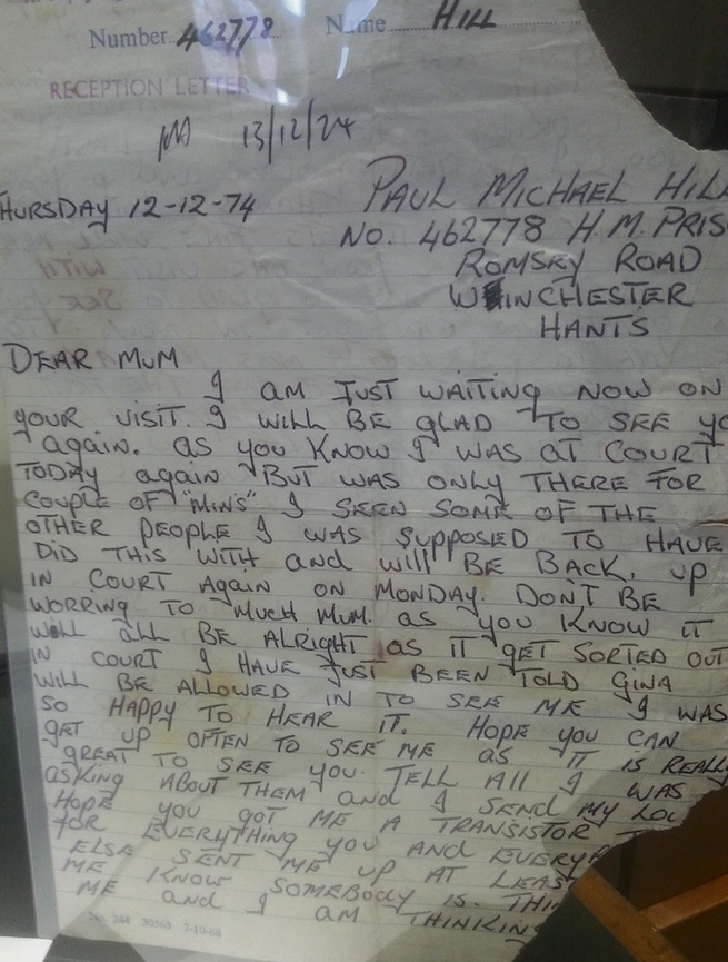 One of the letters written by Paul Hill to his family