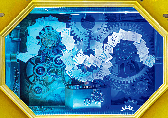 But what has really tugged on the heart strings – even more so than a John Lewis advert – is that the cogs at the base include notes from children being treated at Great Ormond Street Hospital about their hopes for the future.