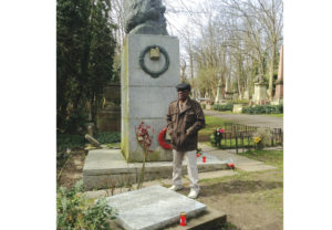 Winston Pinder at Claudia Jones’s graveside, March 2015
