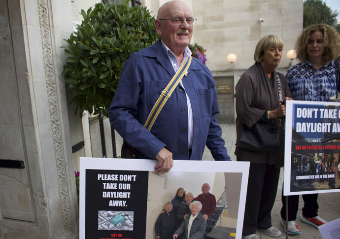 Campaigners opposed to the Castle and Fitzroy House demolition at the Town Hall