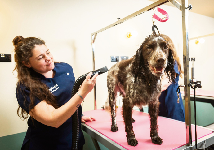 They will also have access to a “spa-inspired” grooming studio – with tiled tubs, soft towels and space for post-bath zoomies – where a quick wash, brush and blow-dry will set puppy parents back £50.
