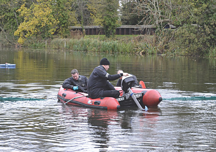Police dive teams search the ponds on Hampstead Heath in 2018 when his daughters Charlotte and Stephanie made a national appeal for information (below)