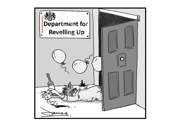 The feeling was similar for James Mellor, whose partygate cartoon about “revelling up” is in the exhibition. He said: “Visually I think usually he is an absolute gift. You can draw a very basic chubby figure with a giant mop of hair. He is such an instantly recognisable character, there is a lot of opportunities how you can use it.”
