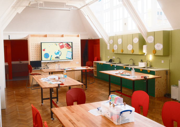 Children will learn science, design and technology, and art in the colourful new classroom designed by school parent Sorrel Challands, and funded by Friends of Ambler, the parents’ association.