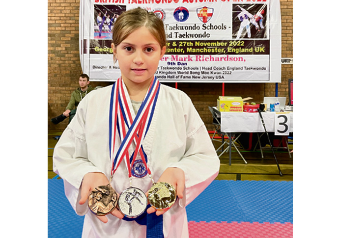 The nine-year-old completed her medal set by bagging a bronze in the “champion of champions” competition, which saw gold medal winners from each age category with blue belts doing battle in the poomsae one final time.
