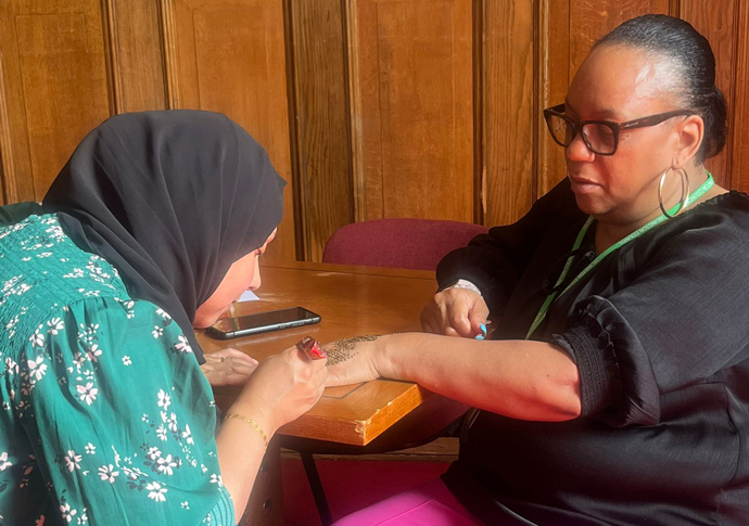 Henna artist Hasnara Ali with Jacqueline Nembhard