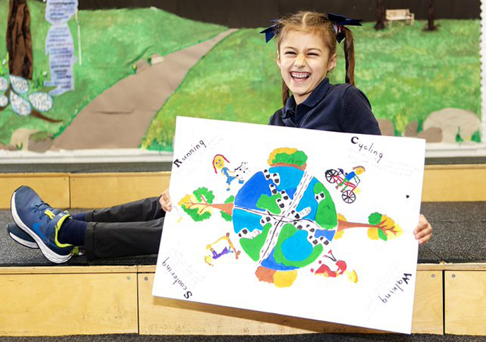 Maria Moraru, who is a pupil at Pakeman Primary, with her poster promoting active travel to school