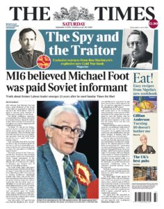 The source of the “new” revelations? A book about the very same Gordievsky by the newspaper’s veteran writer and historian, Ben Macintyre, who lives in Hampstead. The article appeared to contain no new evidence, no paper trail – just further embellishment. I contacted Mr Macintyre yesterday (Wednesday) and he responded to say: “At no point do I suggest that Michael Foot was a spy, or even an agent in anything but the KGB understanding of that word, nor do I imply that Foot was unpatriotic, let alone treacherous, or had anything to do with Soviet intelligence after 1968. But I do conclude that, in the 1960s, he was remarkably naive, open to manipulation and prepared to accept ‘Red Gold’…”