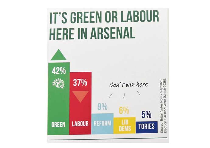 THERE’S another Green leaflet brushing political opponents up the wrong way as it claims the party is on track to decisively seize Arsenal.