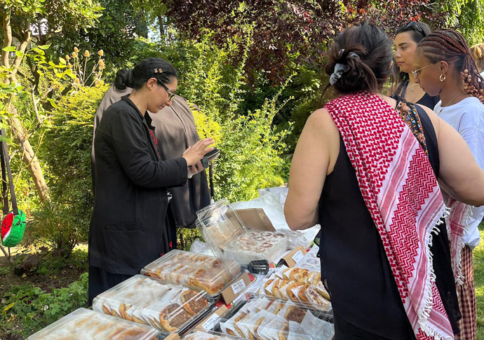 Archway’s Palestinian-owned Cafe Metro brought homemade chocolates, cakes and falafel wraps, courtesy of chef Faten, while local artist Inga Bystram donated prints and Zeina Al-Khaznachi, whose business Asherah Jewellery is dedicated to preserving traditional Palestinian embroidery, sold her creations and led a jewellery-making workshop.