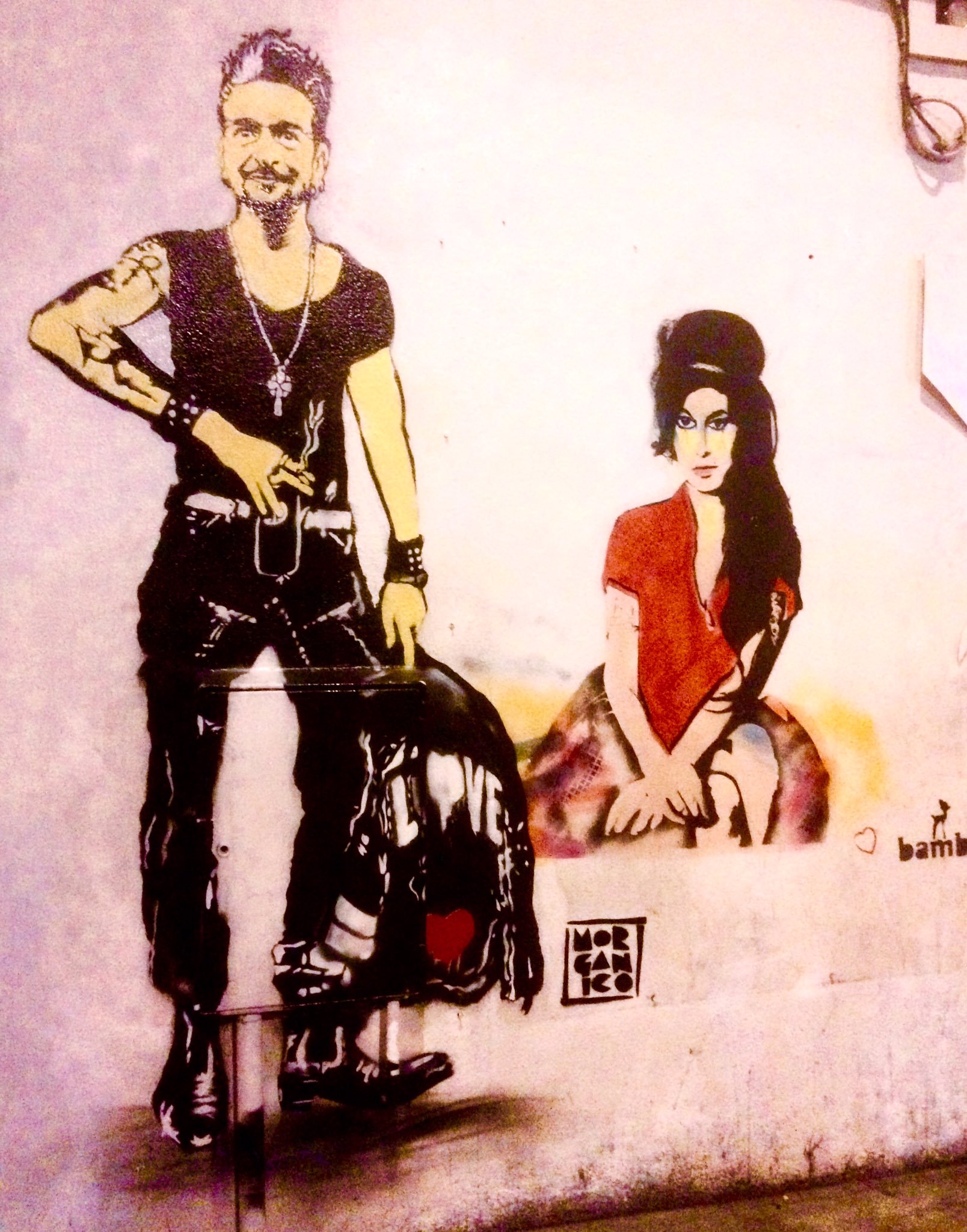 The mural of Michael Dixon added to an artwork of Amy Winehouse in Camden Town