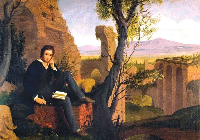 Joseph Severn’s posthumous portrait of Shelley composing Prometheus Unbound in the Baths of Caracalla, 1845 [Keats-Severn House, Rome]