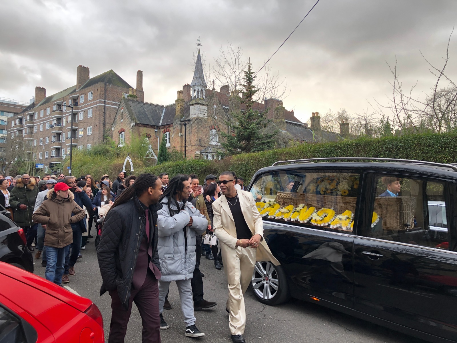 Mourners followed a hearse through Queen’s Crescent to St Dominic’s Church in Southampton Road – accompanied by a specially rewritten version of The House Of The Rising Sun, referencing his home in the Gospel Oak block Wendling, which he used as a gym.