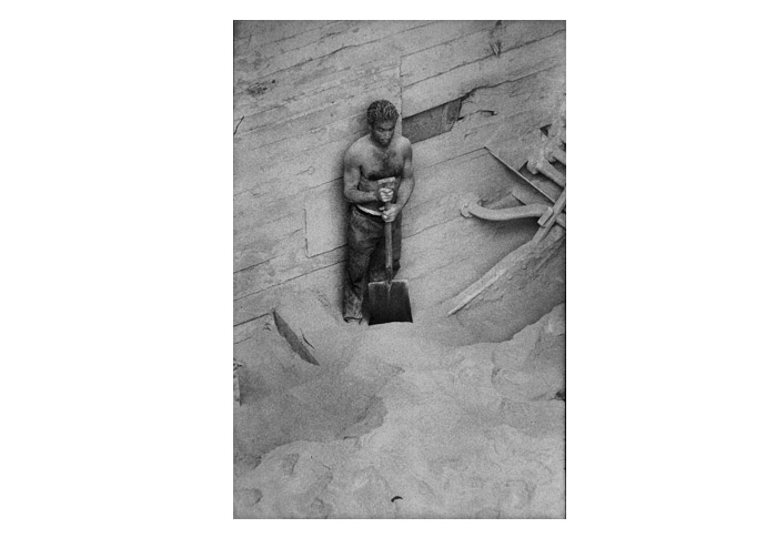 To obtain her photographs at the port, Carmi posed as the relative of a docker to capture the harsh conditions. At the steelworks and the cork factory she highlighted the dangers of production and manufacture and these black and white images fill the other main gallery.