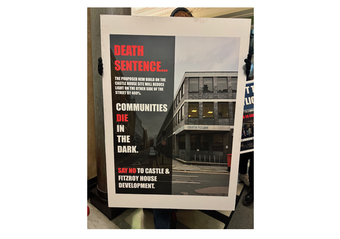 Residents heckled a meeting about Lion Portfolio Ltd’s plans to demolish Castle and Fitzroy House, Bunhill, and replace it with an office block four storeys higher with two new basement levels.