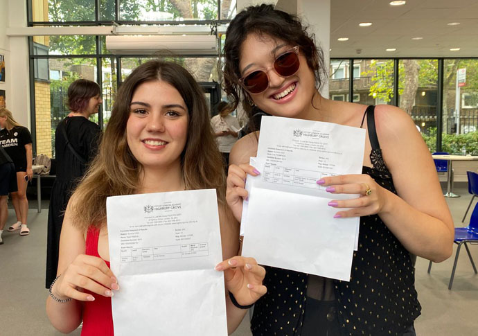 Students had secured their grades for degrees at Warwick, King’s, City, Queen Mary and beyond – a particularly sweet achievement for Lola Thompson, off to do architecture at Sheffield, who managed to ace her BTEC exams with distinctions despite only learning English in Year 9 when she moved here from China.