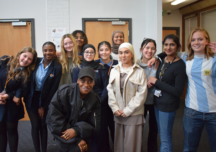 Little Simz also had busy day on Tuesday when she went back to her old school Highbury Fields and met the current generation of pupils, as pictured above. She also gave a spoken-word performance at Elizabeth Garrett Anderson School in Donegal Street