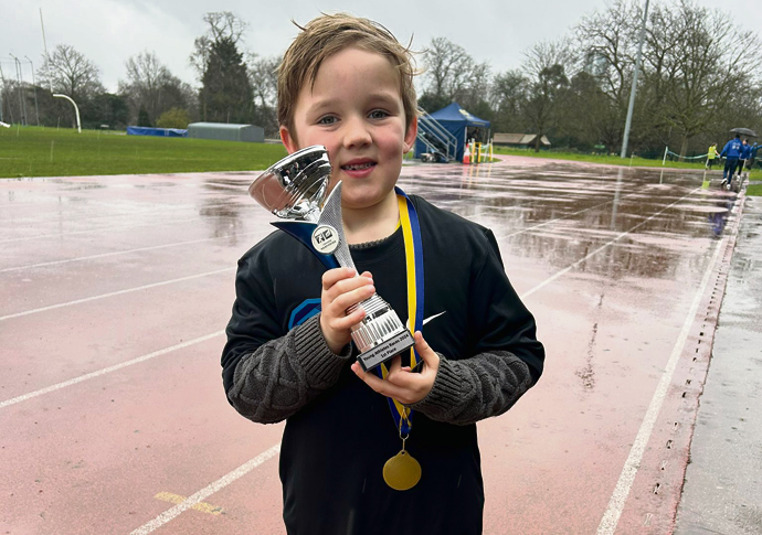 Jules Robertson just couldn’t stop smiling after winning his Under-7s race for Team Camden.